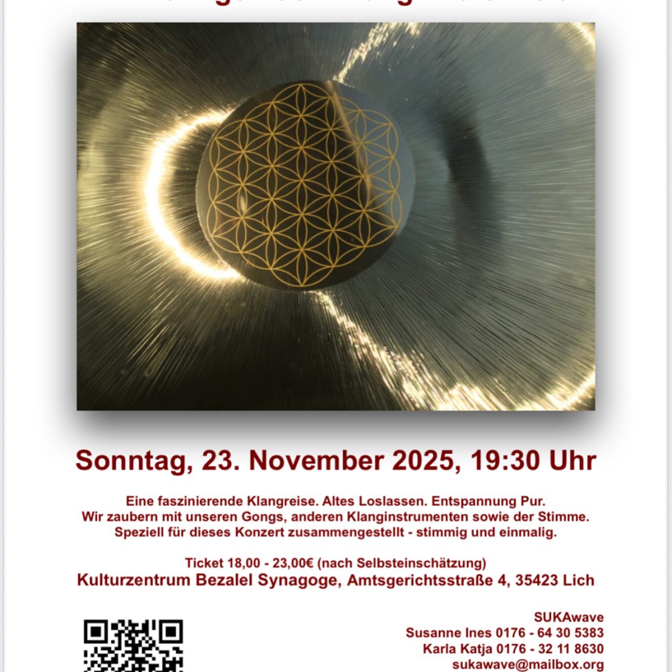 26. Oktober 202526. Oktober 2025 GongKonzert am 23.11.2025 im Rahmen der Veranstaltungsreihe 9. November 1938 in Lich Weiterlesen →