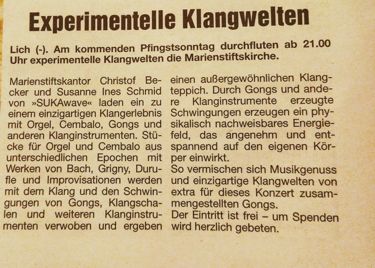 #SUKAwave #SusanneInesSchmid #Marienstiftskirche #ChristofBecker #letdreamsbecometrue #OrgeltrifftGong #ExperimentelleKlangwelten #VeniCreatorSpiritus #Klangflash #cooleMischung #vollerMusikgenuss #wirbringendenKlangindieWelt #welovewhatwedo